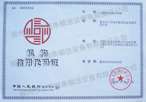 柳州市大宇链条输送设备有限责任公司    电话:0772-3512262    地址:柳州市文昌路3号南亚名邸56栋19-5号